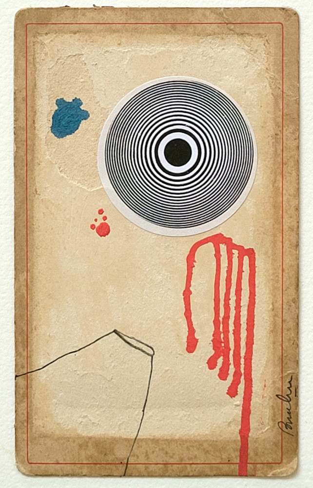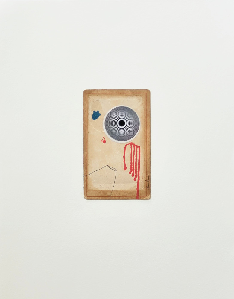 This original gouache, acrylic painting and collage was hand-made on a original vintage card. It is attached to a watercolor paper sheet.