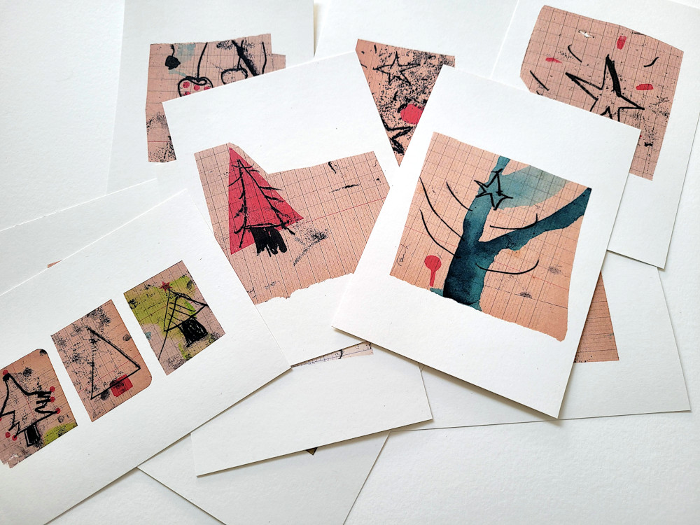 This card is part of a collection of 15 original designs created from my own collages and monotype prints on vintage paper.