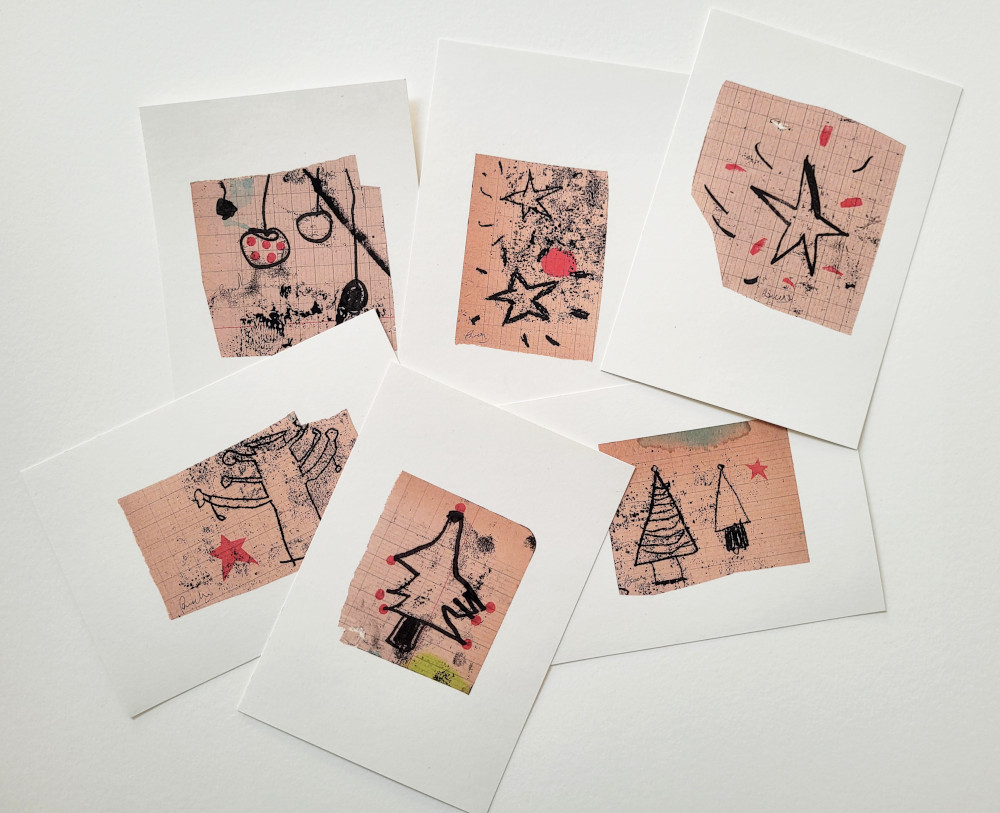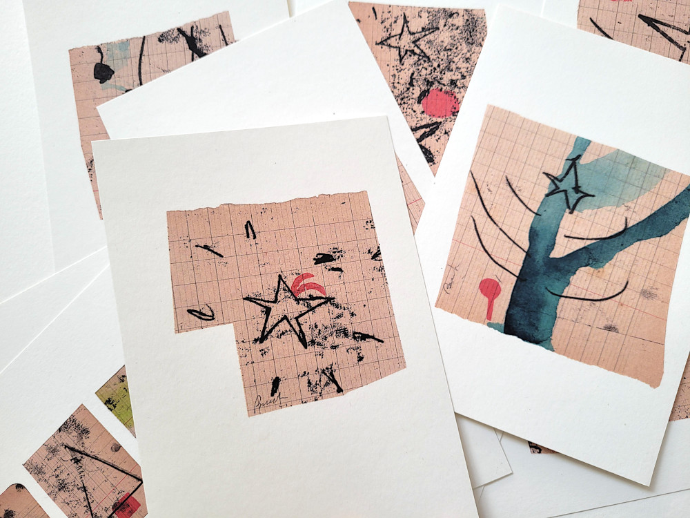 This card is part of a collection of 15 original designs created from my own collages and monotype prints on vintage paper.
