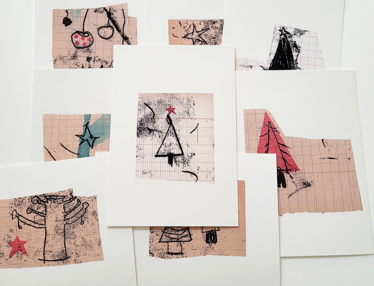 This card is part of a collection of 15 original designs created from my own collages and monotype prints on vintage paper.