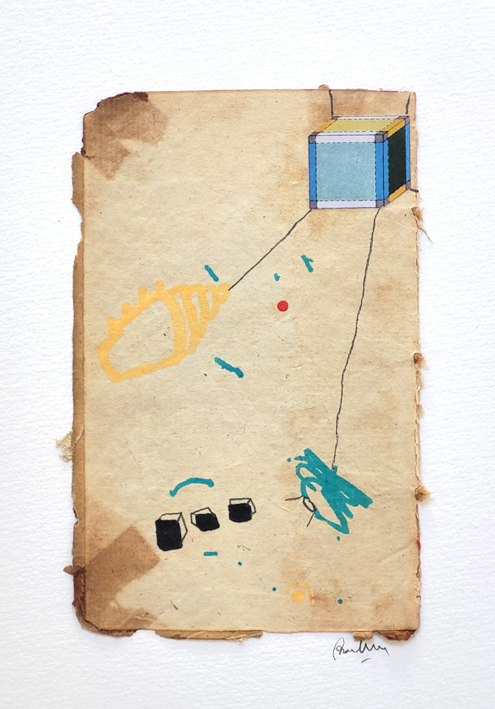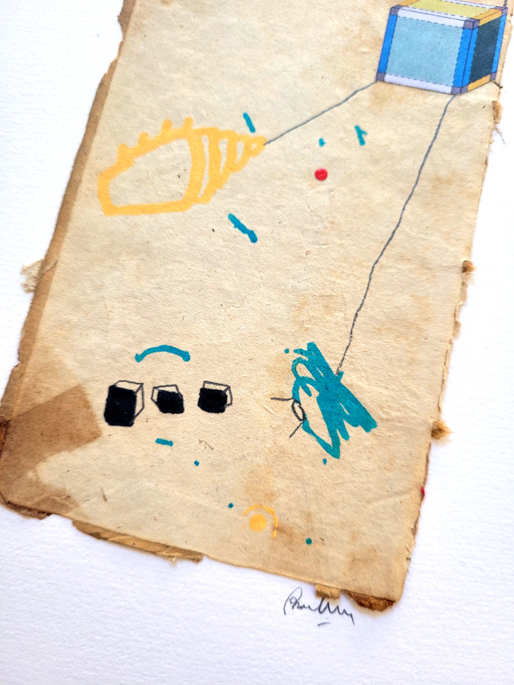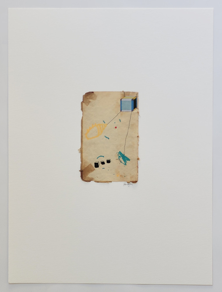 This original drawing and collage was hand-made on a original small vintage book page. It is attached to a watercolor paper sheet.