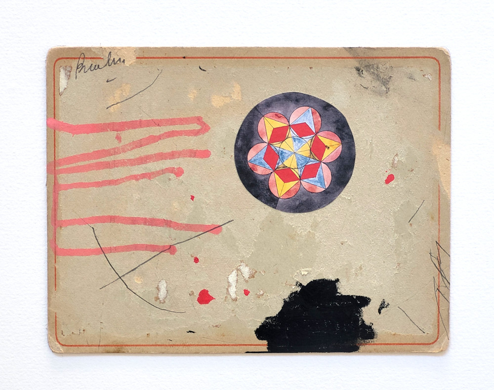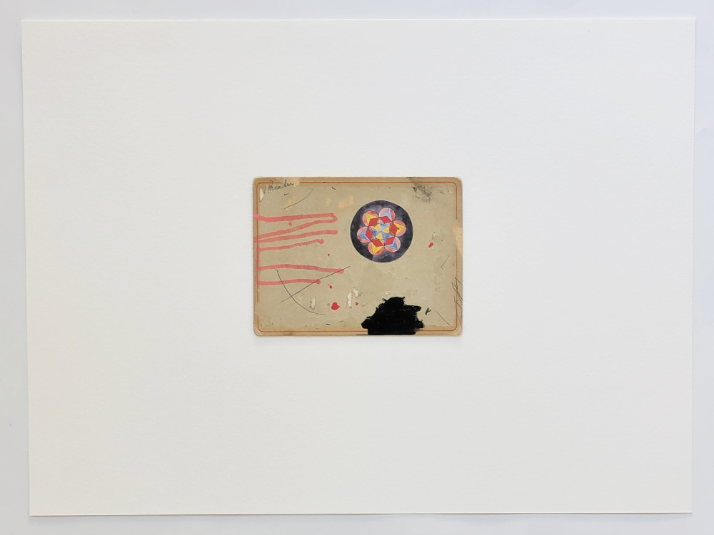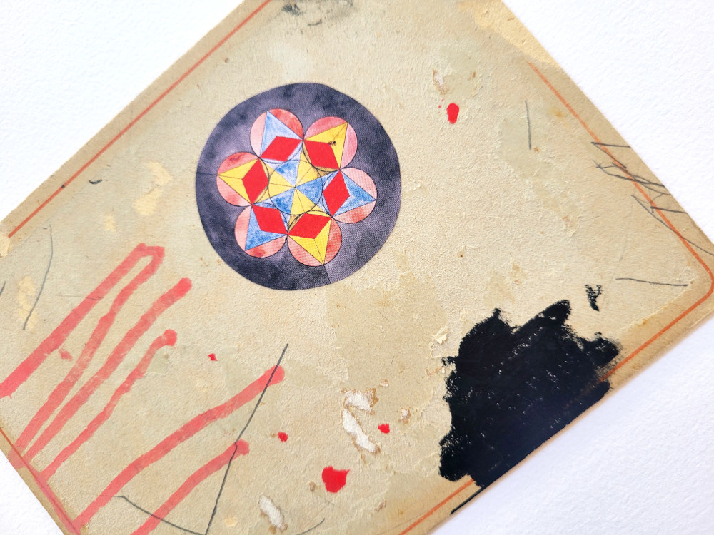 This original drawing and collage was hand-made on a original small vintage book cover. It is attached to a watercolor paper sheet.