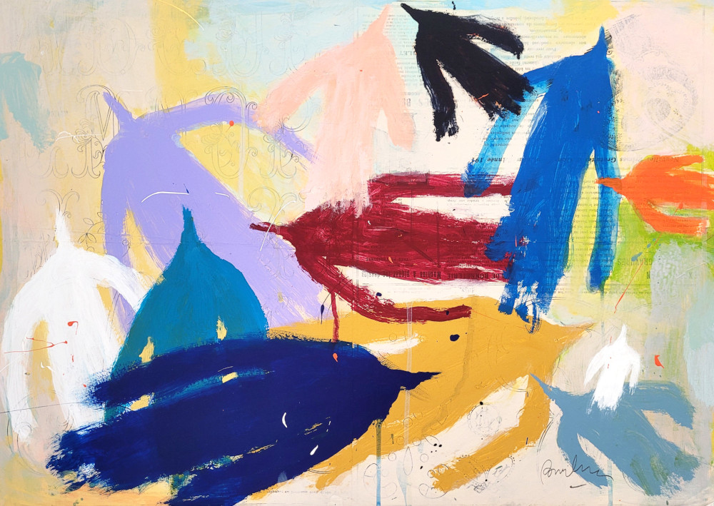 Poetic Birds in Color – Painting on Wood Panel